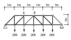 図のような荷重を受けるトラスの上弦材ABに生じる軸方向圧縮力は、