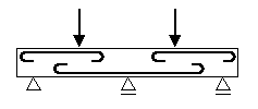 図のような荷重を受ける鉄筋コンクリート造のはりにおける主筋の位置は、適当である。